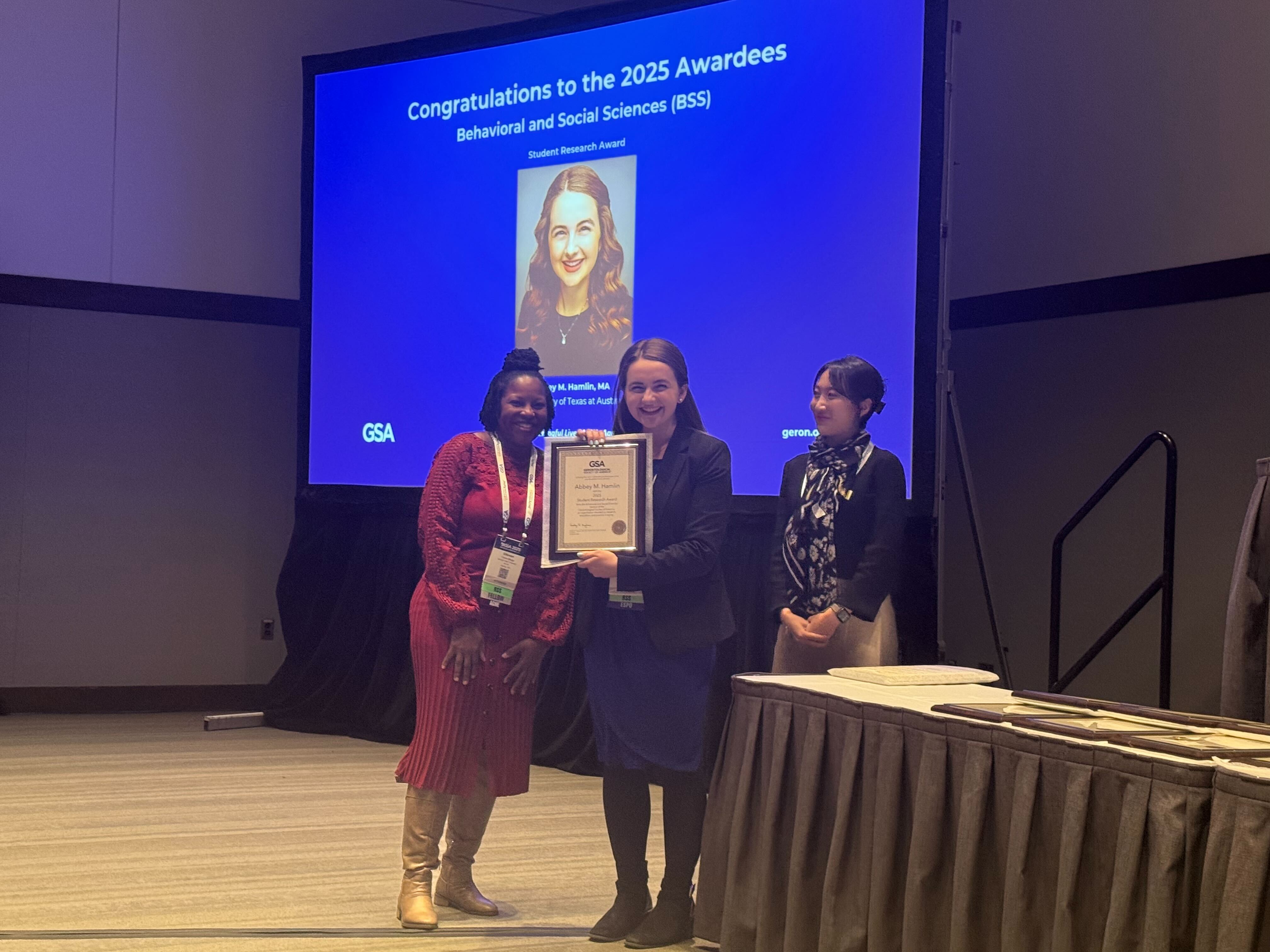 Abbey Hamlin presented her latest research at the Gerontological Society of American meeting in Boston and was awarded a pre-dissertation award.